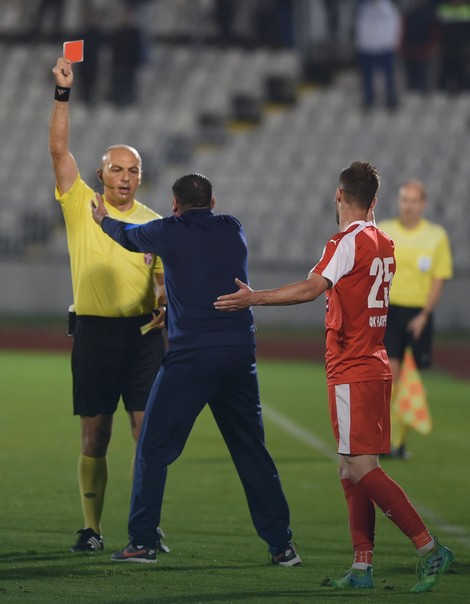 U 28. minutu gosti su ostali sa igračem manje! Boranijašević je zaradio dva žuta kartona i to na čudan način. Odugovlačio je sa izvođenjem auta, a onda posle javne opomene koju je dobio od sudije Anđelovskog, bacio loptu i za 30 sekundi zaradio isključenje.