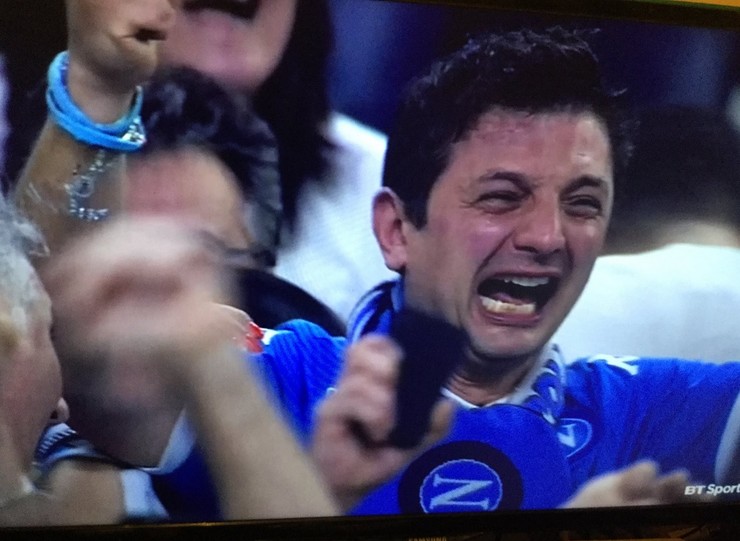 Fanatični su Italijani kada je reč u fudbalu, emocije nikada ne kriju, pa je ovaj navijač Napolija verovatno najemotivnije doživeo gol za trijumf.